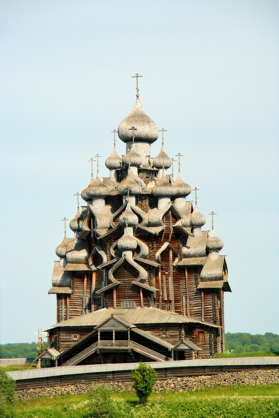 Другим известным сооружением на острове Кижи является Церковь Петра и Павла, которая была построена в 1714 году. Эта церковь привлекает внимание своей необычной пирамидальной формой и мастерством в четком сочетании различных элементов архитектуры.