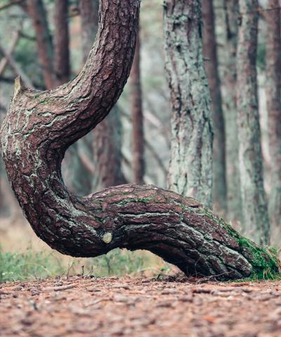 «Танцующий лес» — это название природного феномена, который происходит в некоторых местах мира, где деревья кажется, что «танцуют» или искривляются в разных направлениях.
